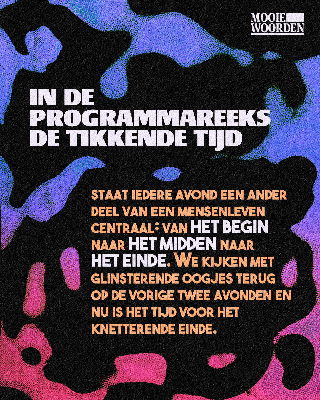 I've been working together with literary collective Mooie Woorden as content creator and marketeer. I've created content for their open call for writers called Natte Inkt and their trilogy event called De Tikkende Tijd. This event on the 12th of September 2025 was held at De Helling and completely sold out.
